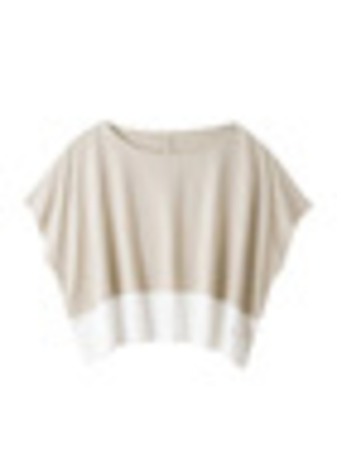 短めの丈感がキュートな切替デザインのTシャツ。ロングワンピースの上から着てレイヤードを楽しんでもOK。