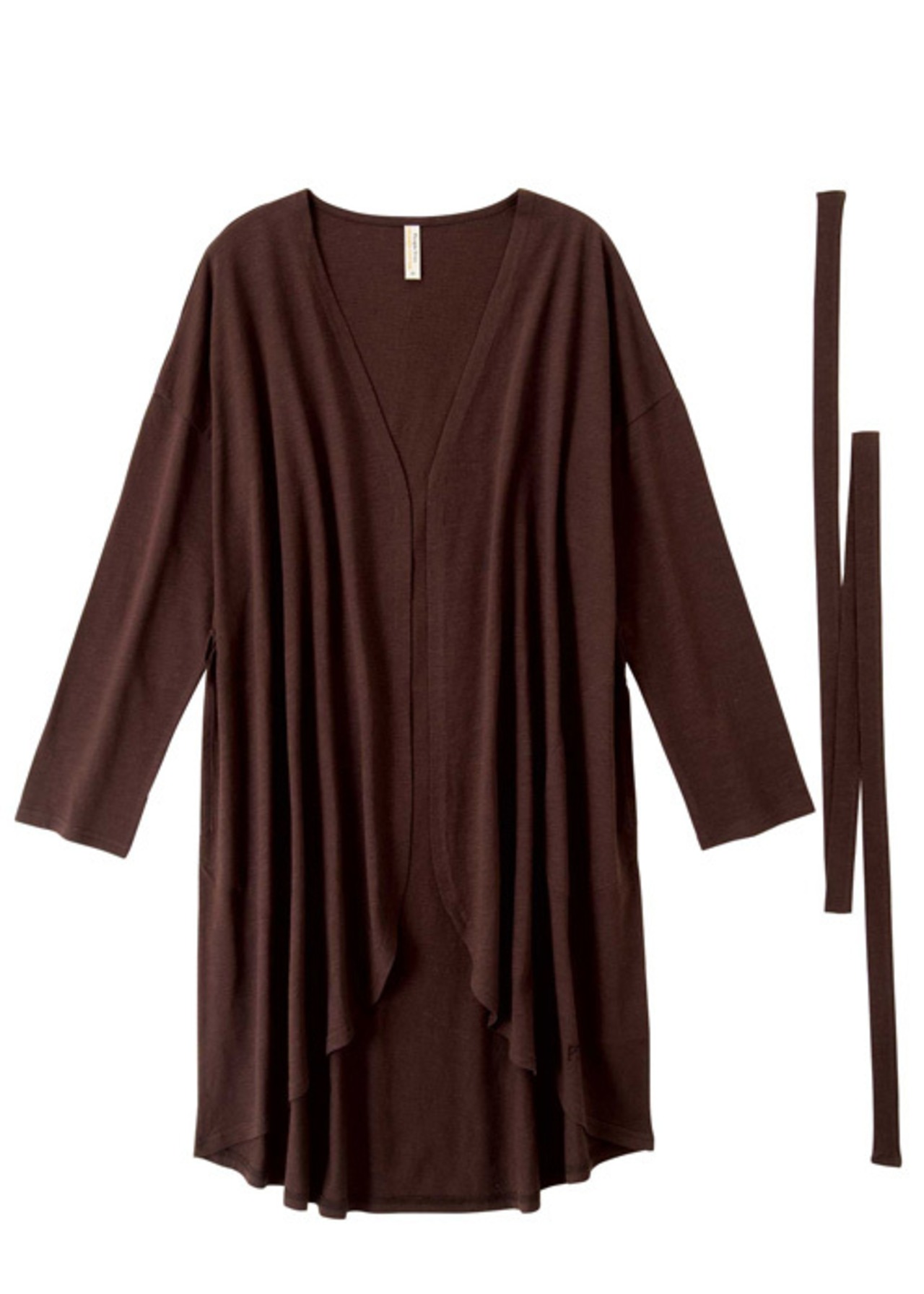 スラブ調のオーガニックコットン生地が、大人のリラックス感を演出。女性らしさがただようロングカーディガン。