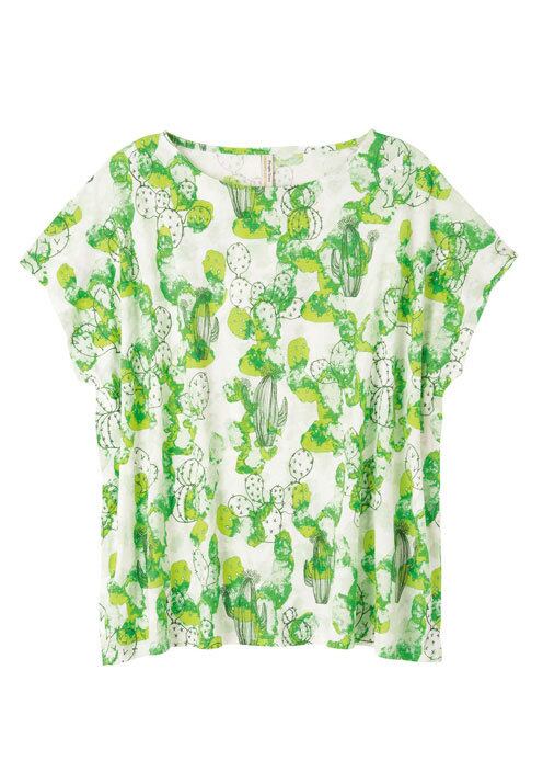40番手の薄い生地を使用したサボテンのプリント。過酷な大地でもたくましく生きるサボテンのエネルギーを感じて。